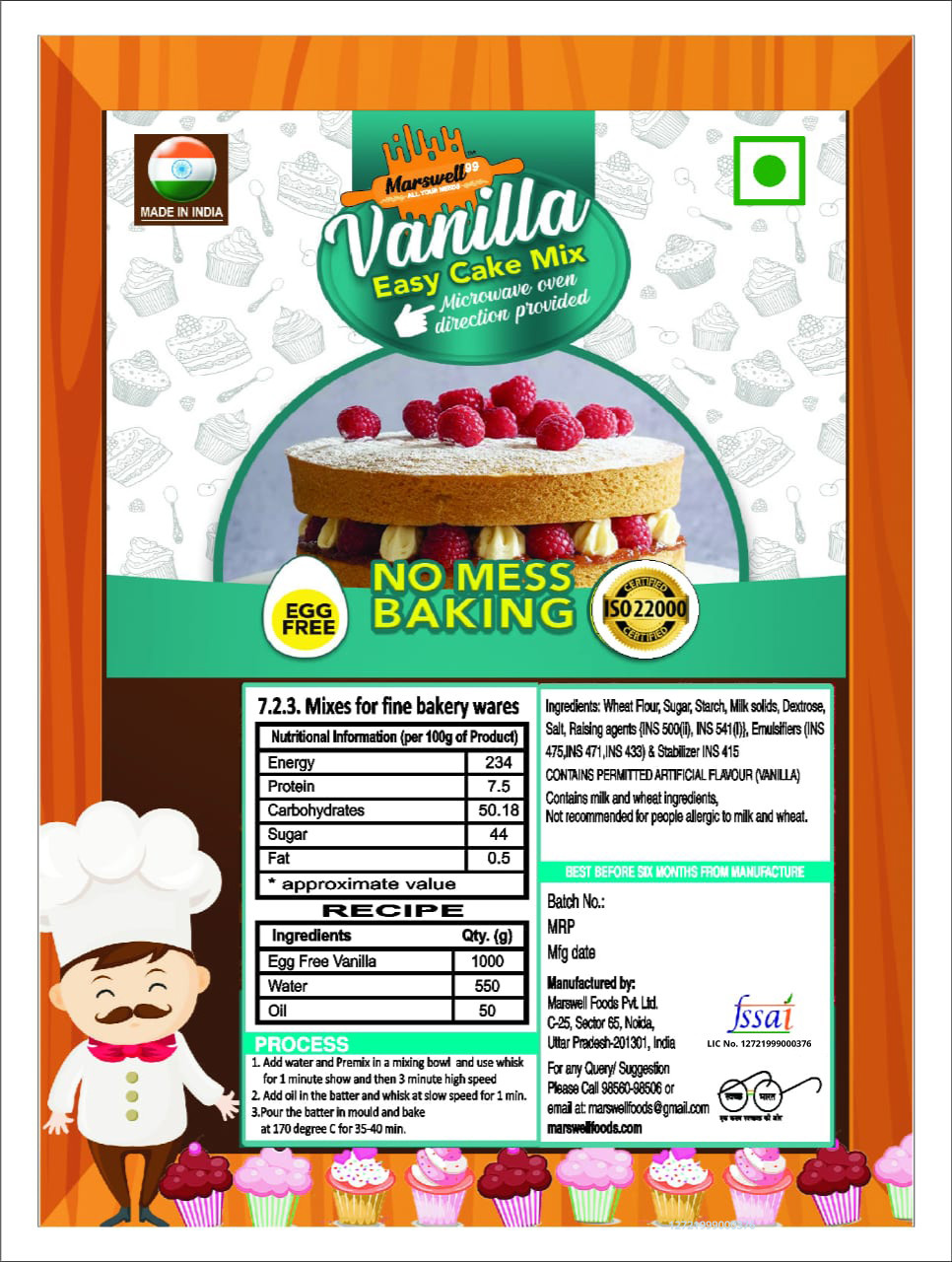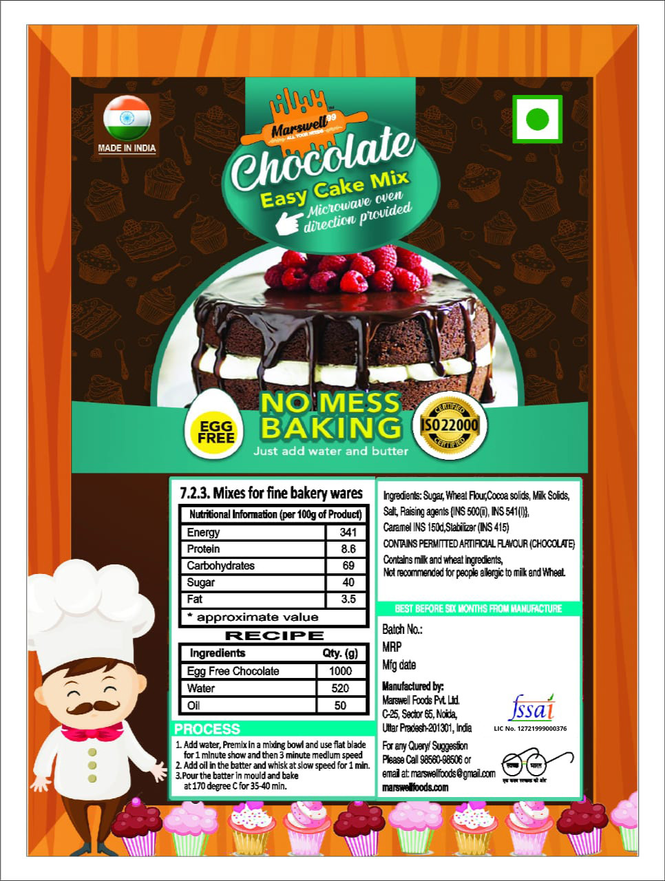 Marswell Egg Free Chocolate Cake Mix Powder 5kg is a convenient mix to prepare moist eggless chocolate cakes and sponges with nice rise, preferable output volume, good stability and an uniform crumb structure. It is an easy-to-use mix, that is perfect for preparing any kind of egg free layered cake Chocolate or marble cake and has a perfect hint of This vanilla is delicious with any whipped frosting that you may be planning to use. This mix is an ideal solution for all professional as well as industrial bakers looking to delight their customers by preparing delicious eggless chocolate cakes with minimum, efforts and in a short time.