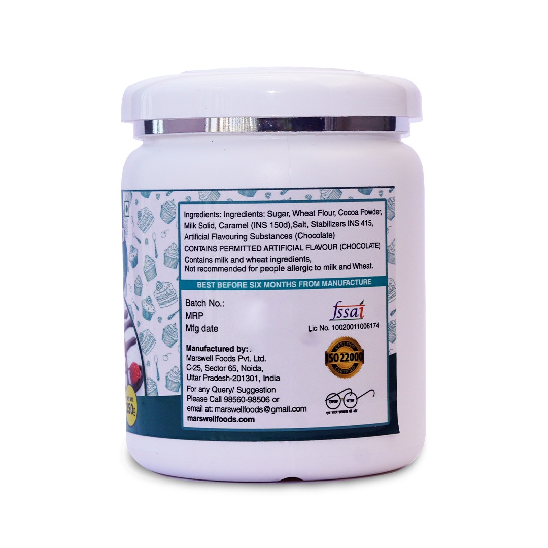 Sugar, Wheat Flour, Cocoa Solids, Milk Solids, Caremal INS 150 d, Salt, Stabilizer INS 415